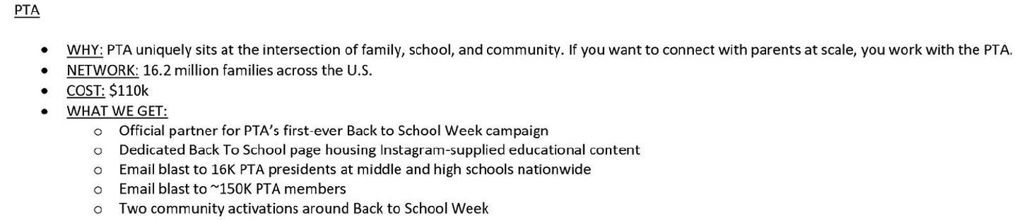 Uncomfortable Truth #2: The National PTA partnered with Meta to ensure Instagram would be part of the “Back-to-School” experience