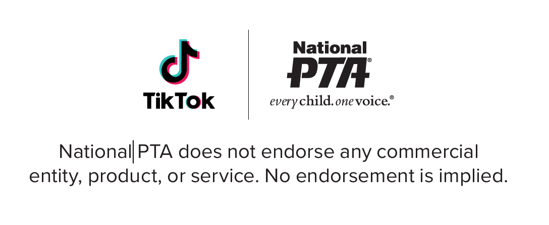 A screenshot of the last page of the “TikTok Guide for Parents: A Collaboration Between TikTok and the National PTA” highlights the uncomfortable tension of this partnership. Despite displaying the National PTA logo next to TikTok’s, the fine print underneath reads “No endorsement of TikTok is implied.”